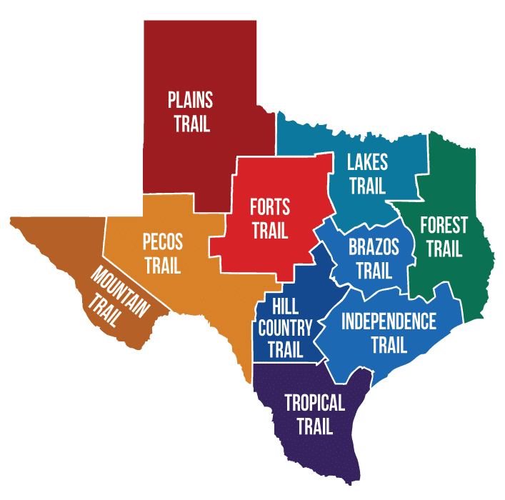 The Texas Heritage Trails Program, administered by the Texas Historical Commission, promotes heritage tourism across Texas through ten regional trail organizations. Each region works with local communities to highlight the historic places, cultural traditions, and landscapes that define their part of the state.